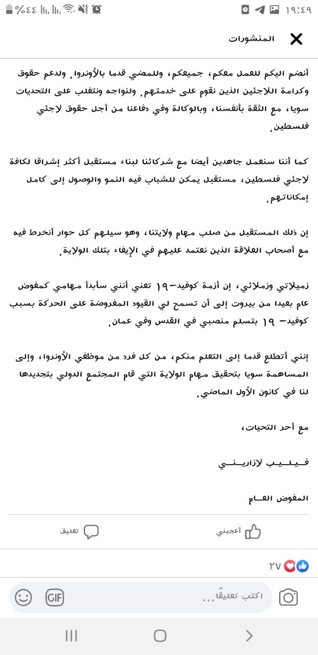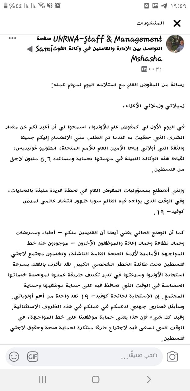 هلقيت رسالة دائرة التعليم اليوم من مصدر رسمي لاني ما شفت اي شخص رسمي في الوكالة حكى عنها