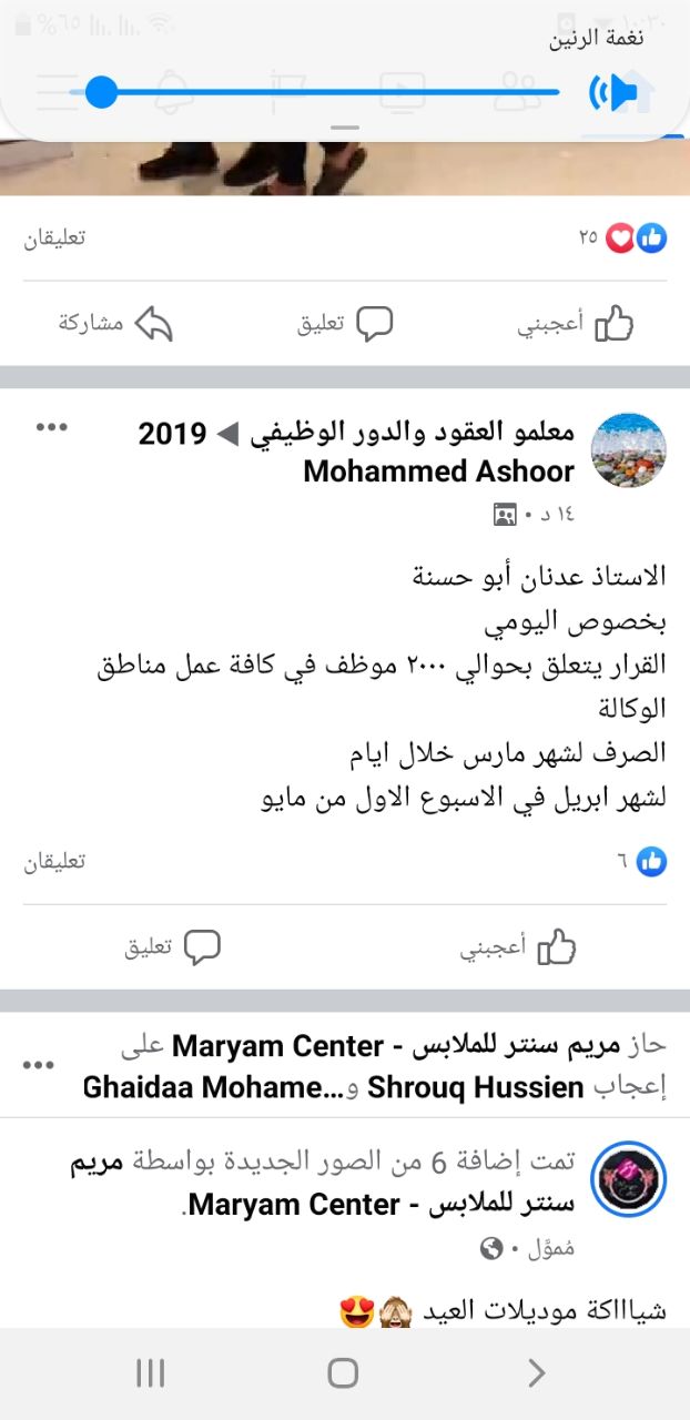 توضيح : جميع موظفي المياومة الذين لم يستطيعوا أداء وظائفهم والمهام المنصوص عليها في عقودهم سيحصلون على 50% من الراتب المتوقع لشهري آذار ونيسان، بالرغم من تعليق مهامهم.