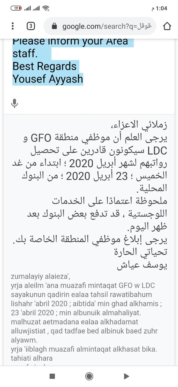 ياجماعة الخير في حد حيحكي بموضوع باقي الراتب ام خلص انتهى
