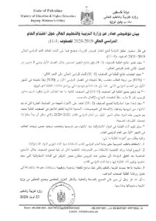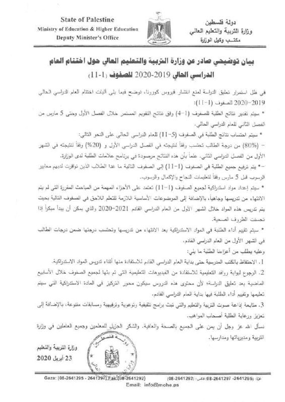 🅰️⭕ وزير التربية والتعليم برام الله: ينتهي العام الدراسي كما هو مخطط له في 23/05 والاستمرار فى التعليم عن بعد والتعليم الإلكتروني