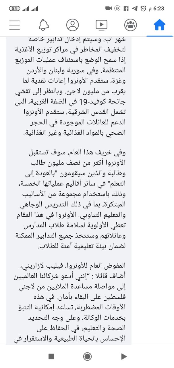 الوكالة والحكومة تطلقان تصريحات حذرة هذه المرة حول بدء العملية التعليمة ويسندانها إلى الحالة الوبائية ونشاطات وزارة الصحة والجهات المعنية.