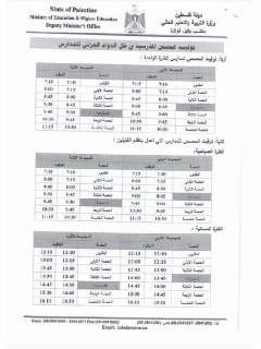 بناء على قرار وكيل الوزارة تقرر البدء بالمرحلة الثانية من العودة الآمنة للمدارس وذلك يوم السبت ١٠/١٧ دوام المعلمين والطلبة يوم ١٠/١٩ وعليه يتم البدء بدوامكم الإداري وكذلك الإداريين لتهيئة مدارسكم لاستقبال الطلبة بعد الأخذ بعوامل السلامة التامة من نظافة وتنظيم لمرافق المدرسة.