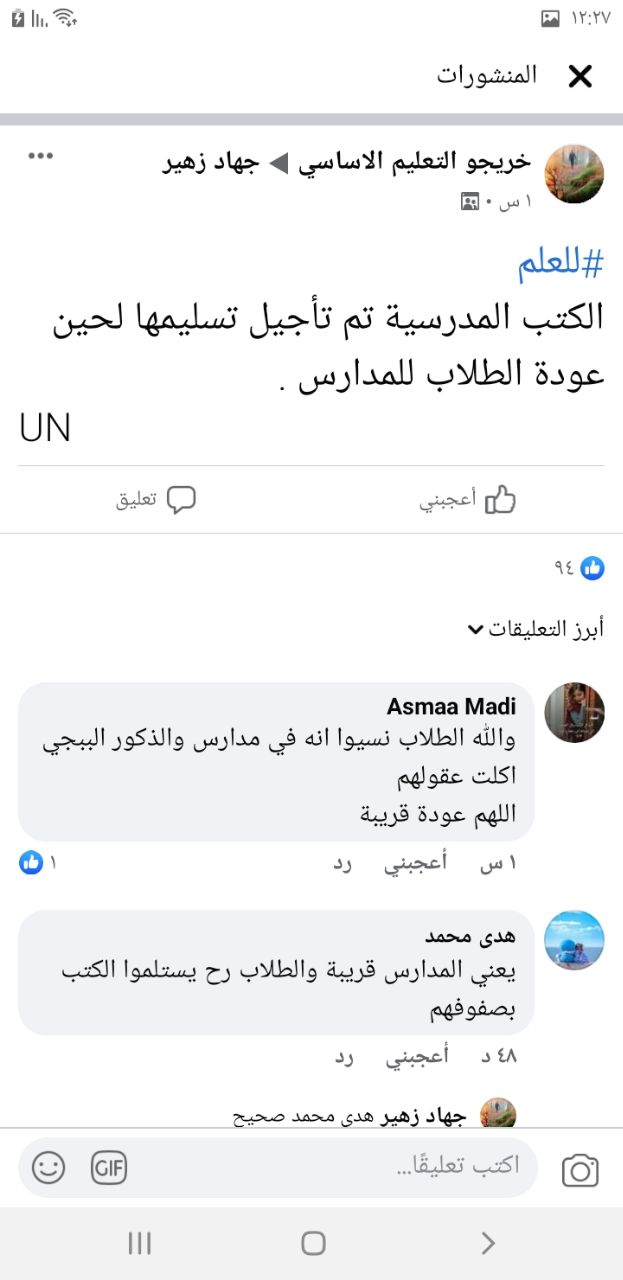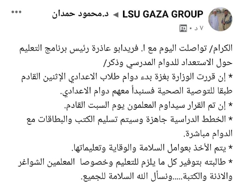 الجميع و رايح يداوم الاسبوع الجاي الاعدادي من صف سابع حتى توجيهي