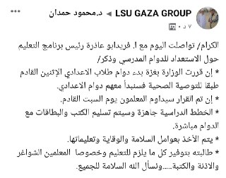 #عاجل : مراسل غزة الآن : إعادة فتح جميع الجامعات في قطاع غزة نهاية شهر أكتوبر الحالي