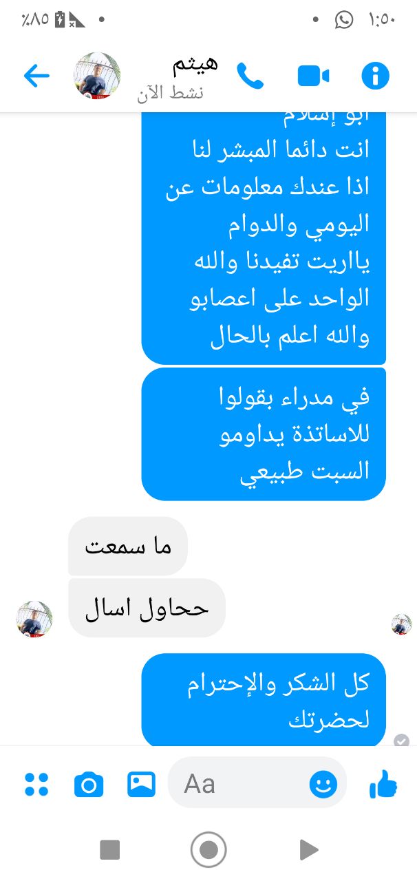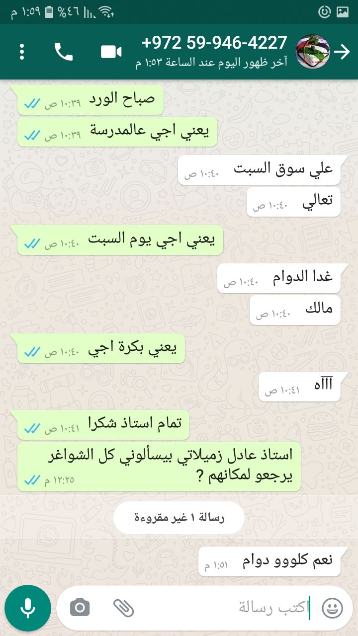 والله هلأ واحد بحكيلي مدرس بالمدرسة حكالي السبت حنداوم