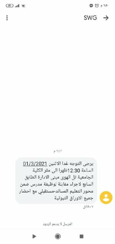 لو سمحتو حدا بيعرف هادي الرسالة من اي جهة ولاي وظيفة بالضبط