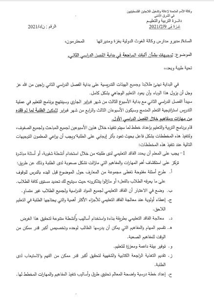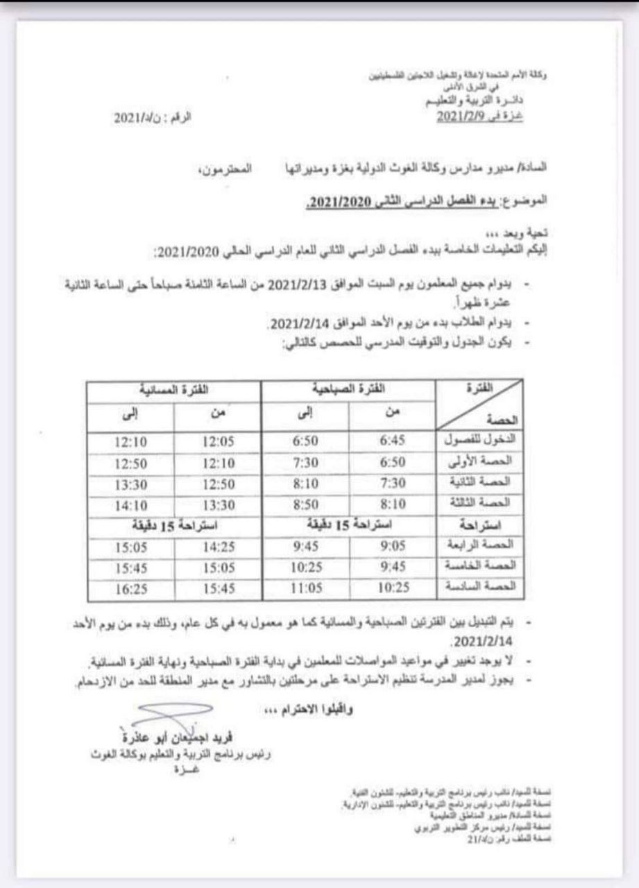 - يبدأ الفصل الثانى في #الوكالة يوم الأحد القادم الموافق 2021/02/14 للطلاب، أما المعلمون يوم السبت 2021/02/13.