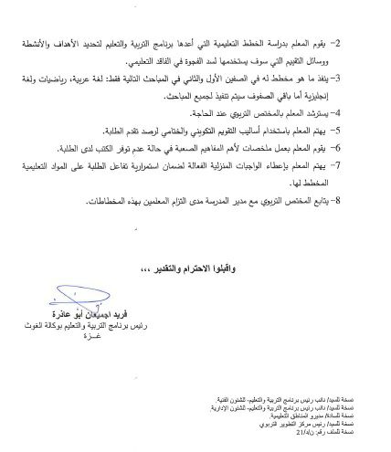 مع ملاحظة بأن آخر يوم عمل للمعلمين اليومي هو يوم الخميس القادم الموافق 11.02.2021.