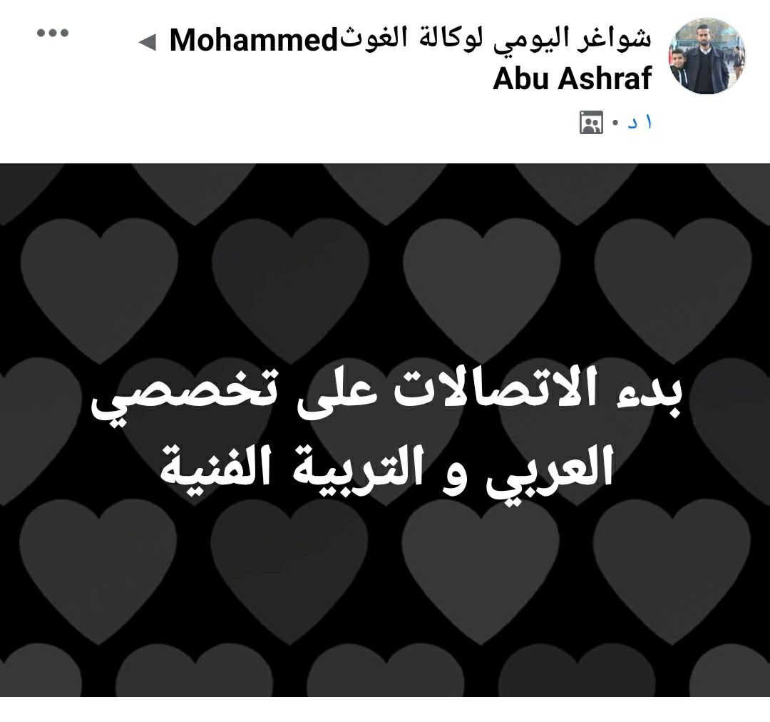 - غدا الأربعاء سيتم الاتصال على شواغر الوكالة 2020 لجميع التخصصات ما عدا الرياضيات والإنجليزي، وستكون قائمة الشواغر لمدة لعامين.