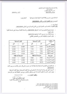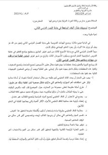 بدء الفصل الثانى يوم 14/2/21 للطلاب. يوم السبت القادم 13/2/21 دوام معلمين