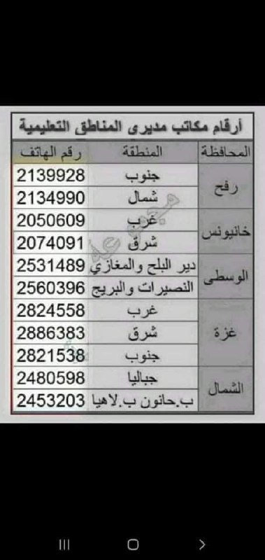 كان في لائحة أرقام عليها أرقام مدراء المناطق
