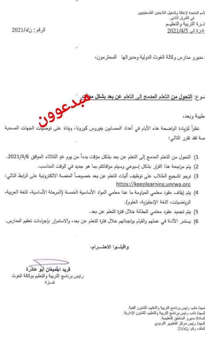 غداً دوام الشواغر المجمدة عقودهم أمام بوابة الوكالة الساعة العاشرة. -