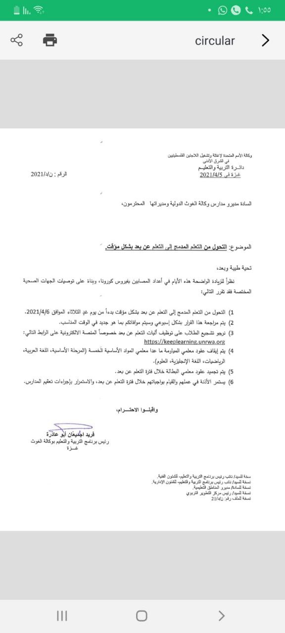 و كأن أرزاقنا أصحبت لعبةً بيد المسؤولين لذلك نهيب بكم يا أصحاب الشواغر بالحشد الكبير لكي نوصل صوتنا عالياً يُصم أذان المسؤولين بوكالة الغوث الدولية و لكي نستعيد حقوقنا المسلوبة فأنتم يا أصحاب القرار مسؤولين عن أرزاق ما يزيد عن 250 شاغر من أصحاب هذه التخصصات و هذا العمل هو مصدر رزقهم الوحيد و لله المشتكى ،، موعدنا غداً الثلاثاء 6 _ 4 _ 2021 أمام بوابة الوكالة الغربية و لكي نقدم رسالة للمفوض العام لوكالة الغوث في الأقاليم الخمسة فيليب و للمفوض لدى إقليم غزة ماتياس شمايلي و لمدير دائرة التعليم أ. فريد أبو عاذرة .