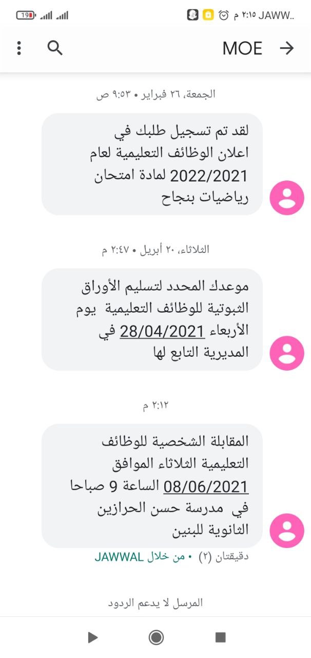 بعتو رسالة بموعد المقابلة