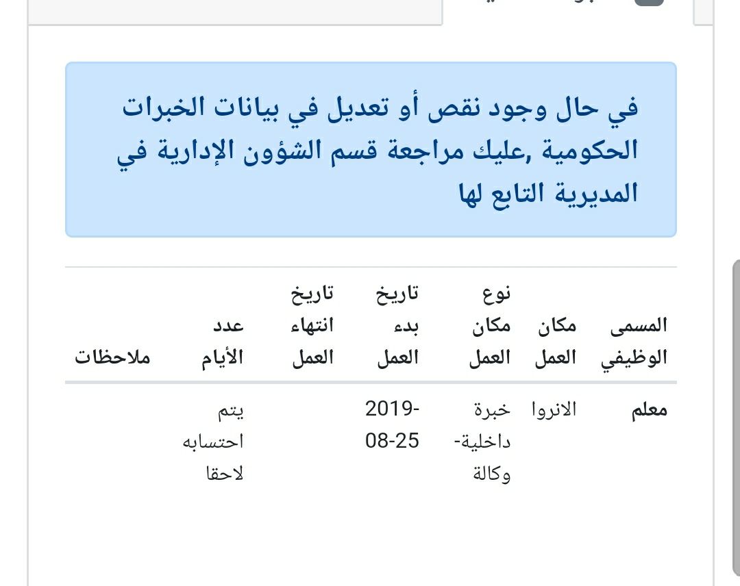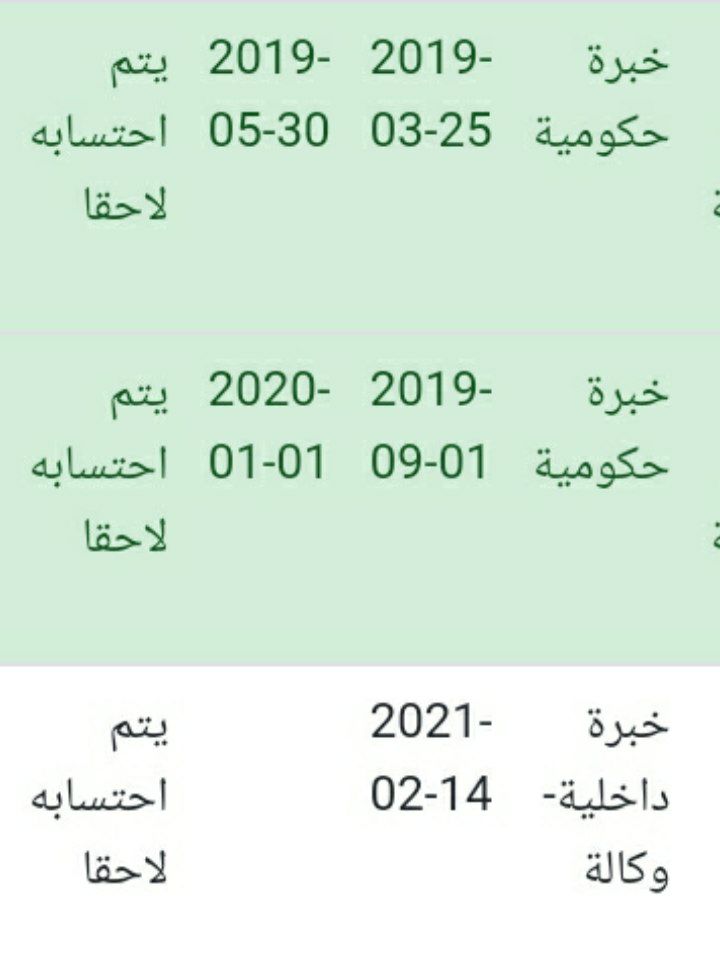 طيب حتى خبرة الحكومة يتم احتسابه لاحقا