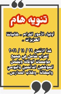 الان في اللحظة هذه من ادارة مدرستنا وصلنا الخبر تأكد اضراب غد