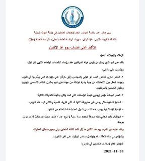 الاتحاد سيستمر في الاضراب غدا وسيصدر بيانا توضيحيا