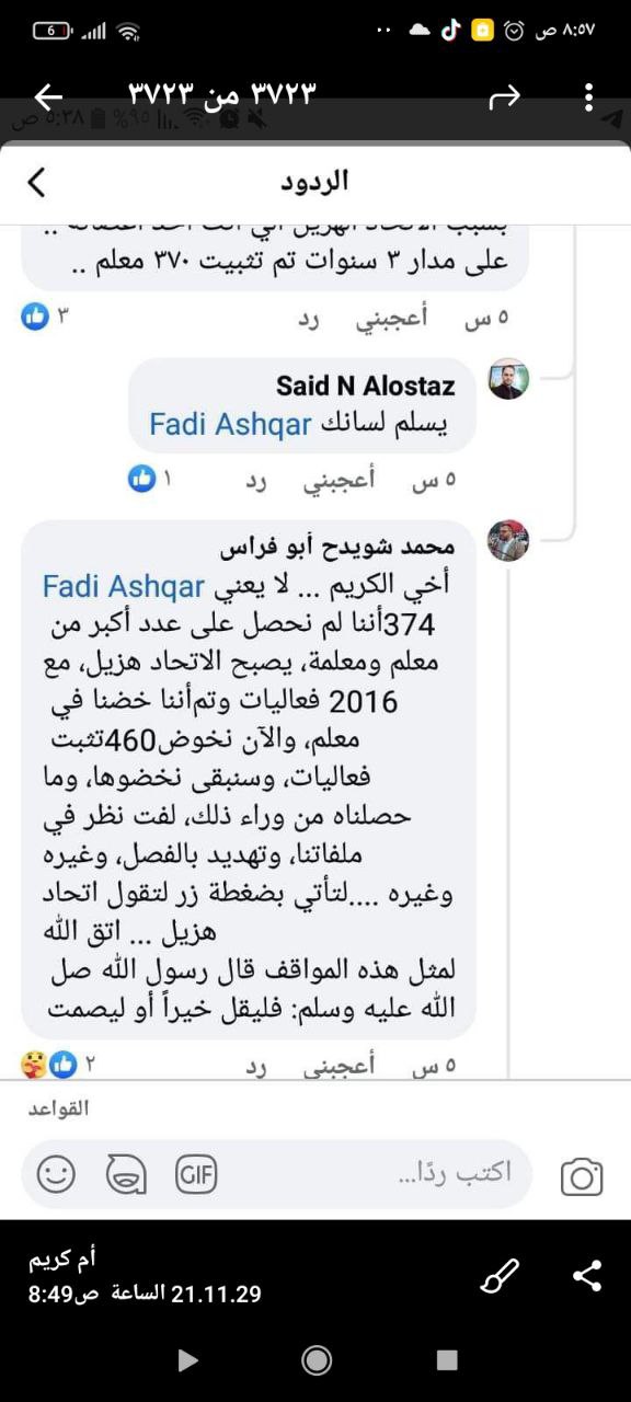 3- اعداد المعلمين المثبتين في غزة قرابة 8500معلم ومعلمة .