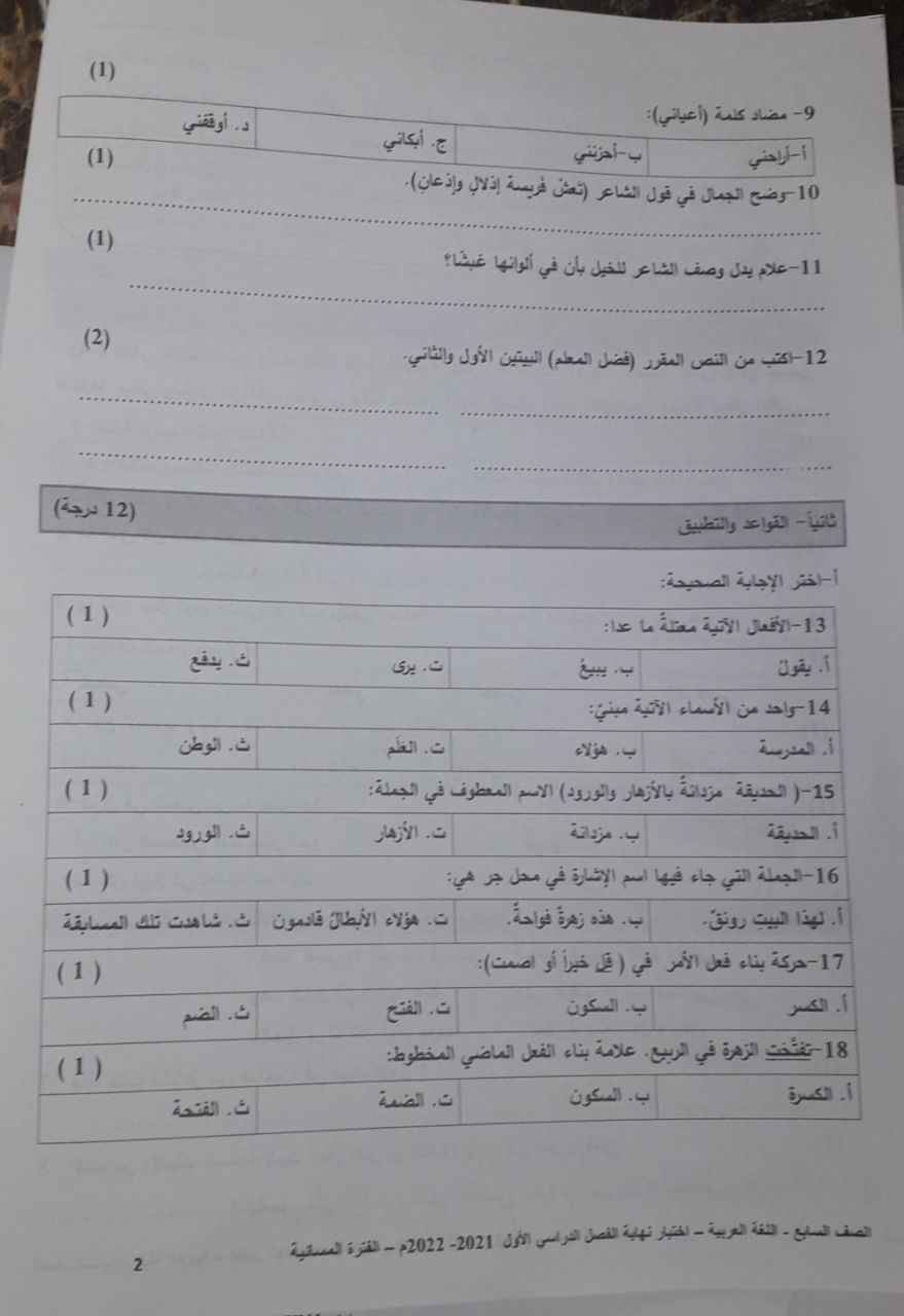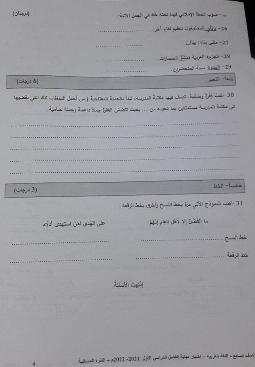 امتحان الانجلش في 29 الشهر