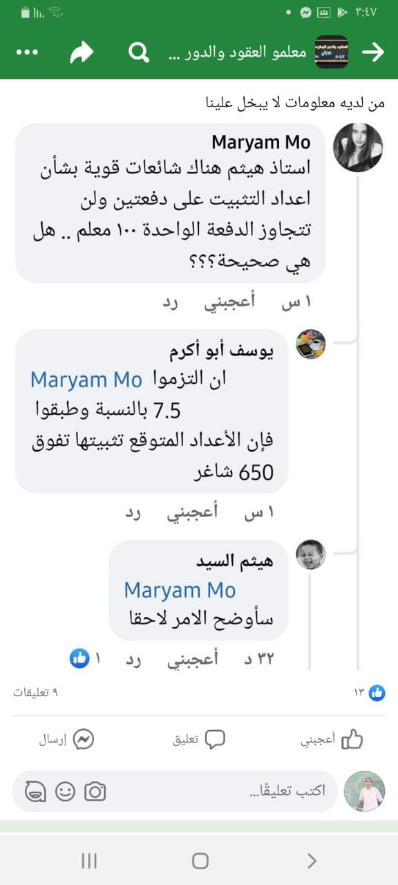 قبل أن يحسم الأمر خلينا نكون موجودين ونطالب بنسبة ٧.٥والغاء الدفعات