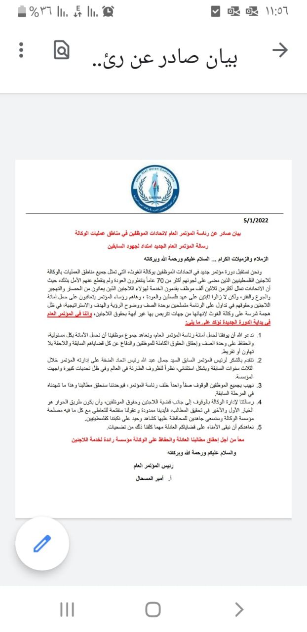 يا جماعة حسب كلام مدير المكتب حسب قانون الوكالة ما في مسمى بدل شاغر كل من اشتغل سيبقى مكانه هيك حكولنا