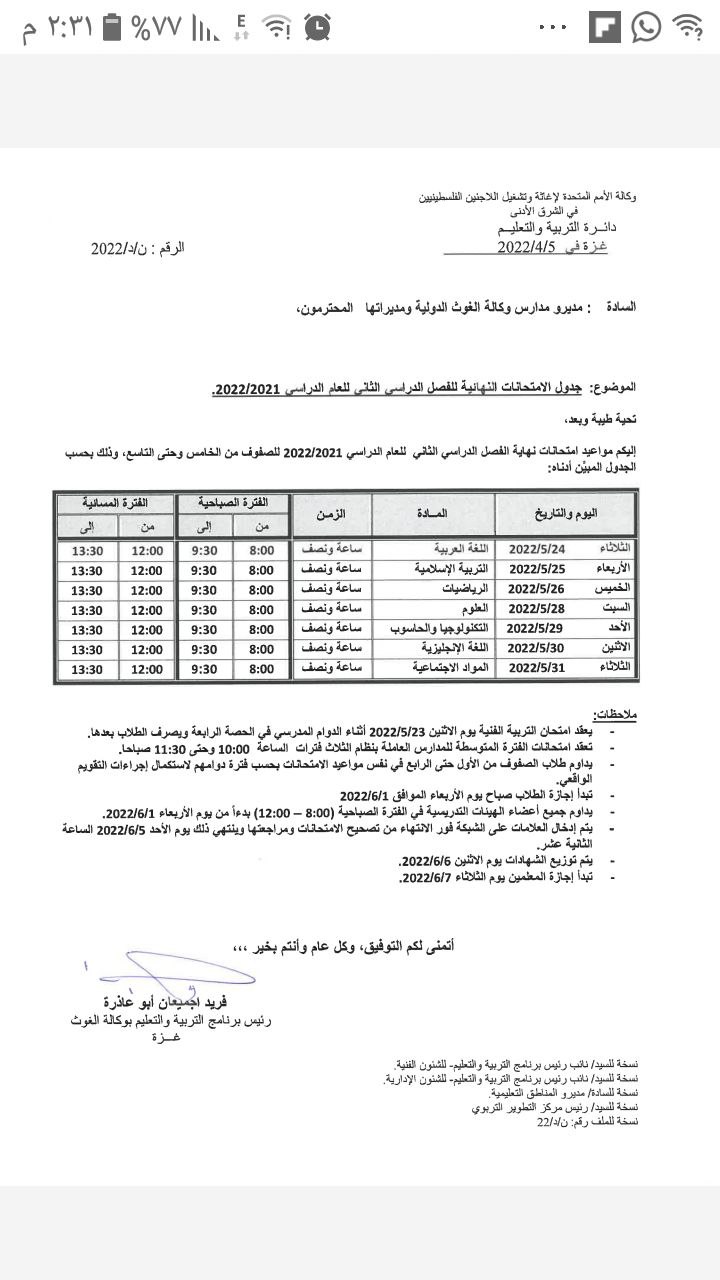 تواصل التعليم مع الوكالة واتفقوا على اعطاء اليومي شهادات افادة وعدم ارسال كشوفات للتعليم