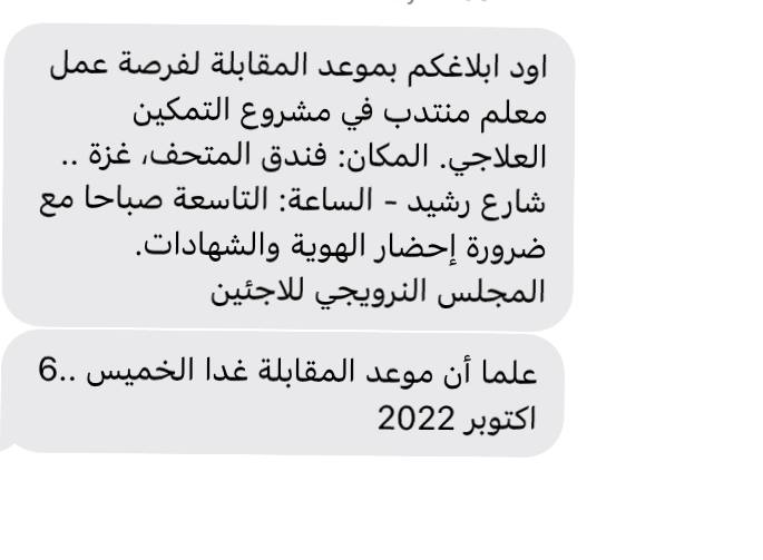 اتصلوا علي اليوم من المجلس النرويجي لمقابلة معلم مساند لغة عربية في الحكومة