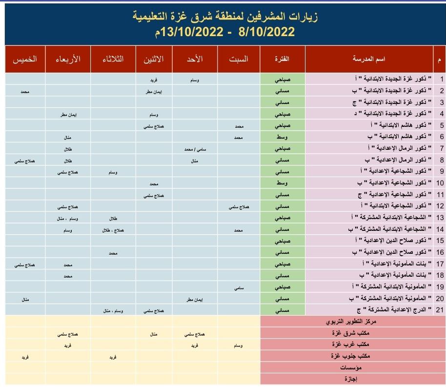 مين معه جدول زيارات مشرفين غرب غزة ؟