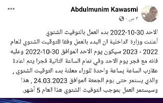 أنا قرأت في صفحة أنه من الأحد توقيت جديد