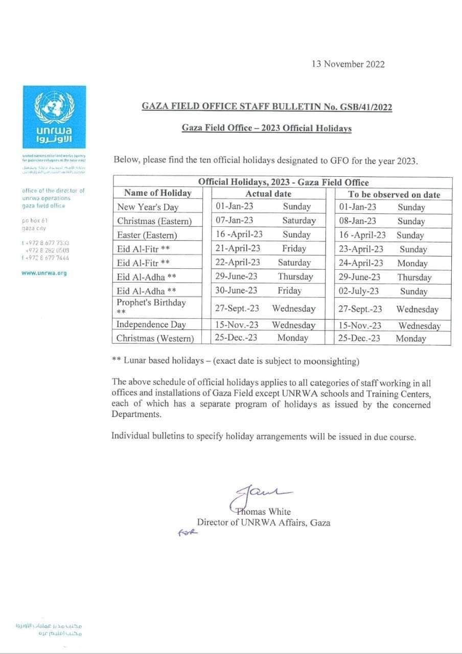 ★ تأكيد على وحدة ما تبقى من فلسطين (الضفة وغزة) فهذا النظام معمول به في الضفة منذ زمن وهناك مدارس مسيحية تعطل الجمعة والأحد ، تجد في منصف رام الله مدرسة مسيحية معطلة يوم الاحد ومدارس أخرى تعمل .