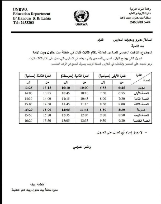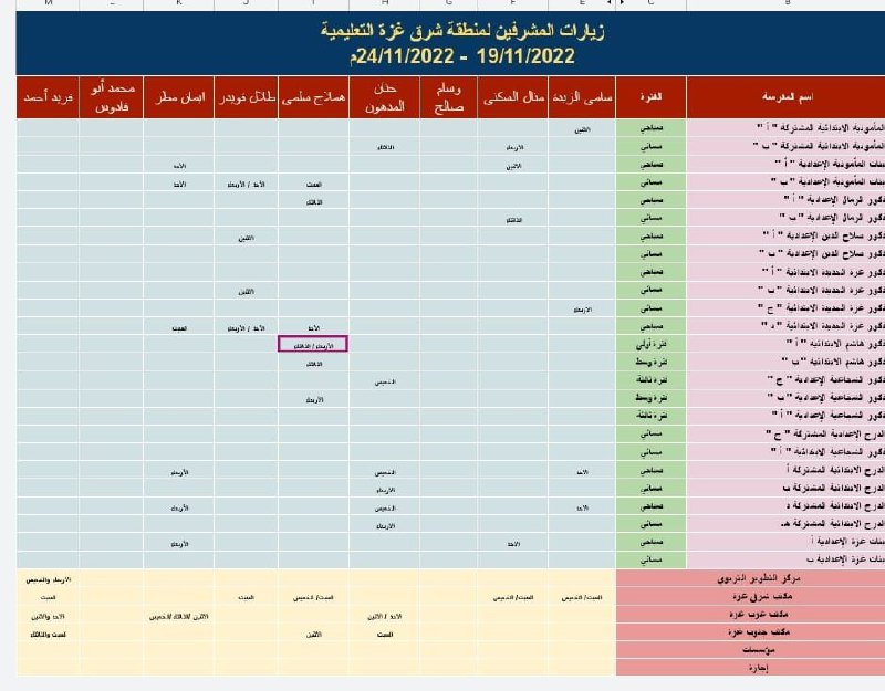 السلام عليكم بدنا جدول حظور المشرفين منطقة جباليا التعليمية