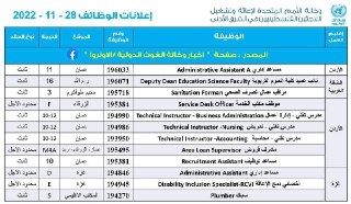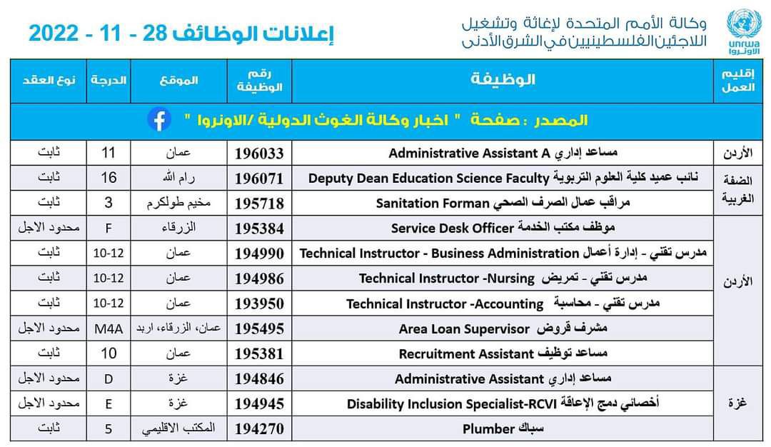 الاونروا - إعلان الوظائف