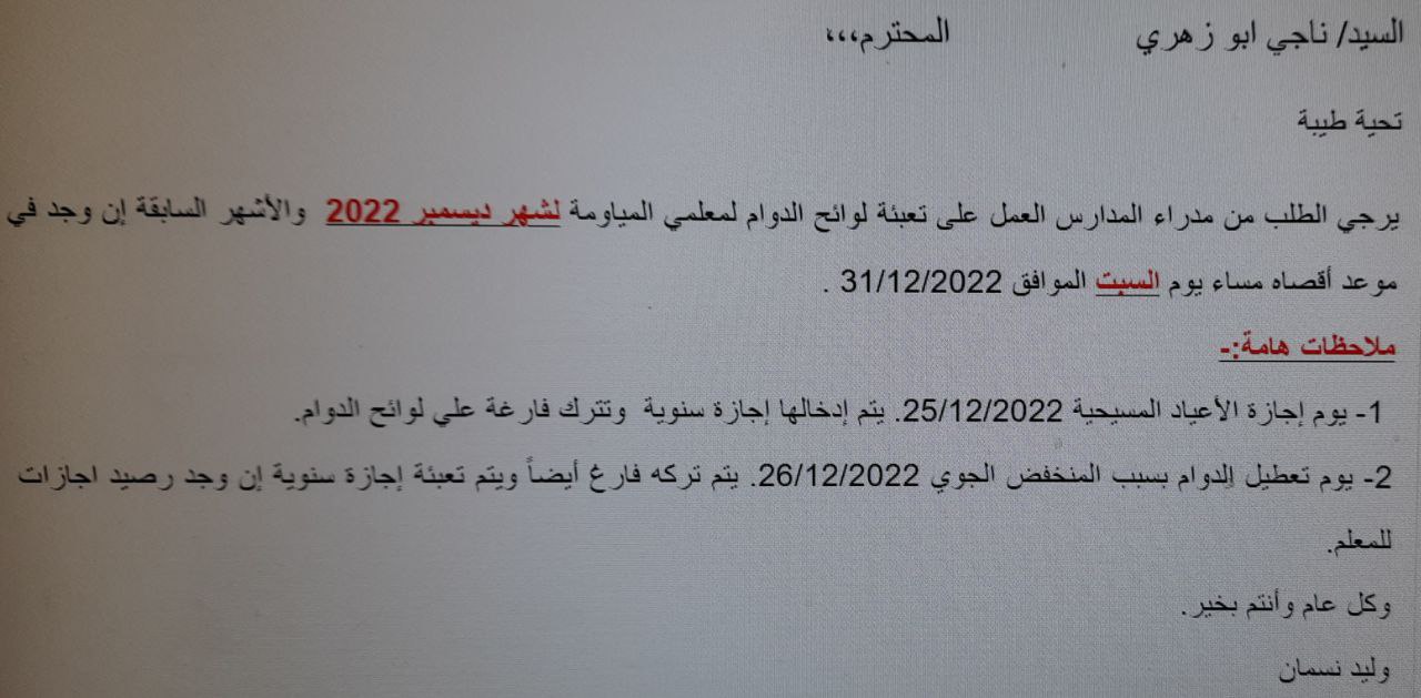 متى وصل هاد الايميل للمدارس