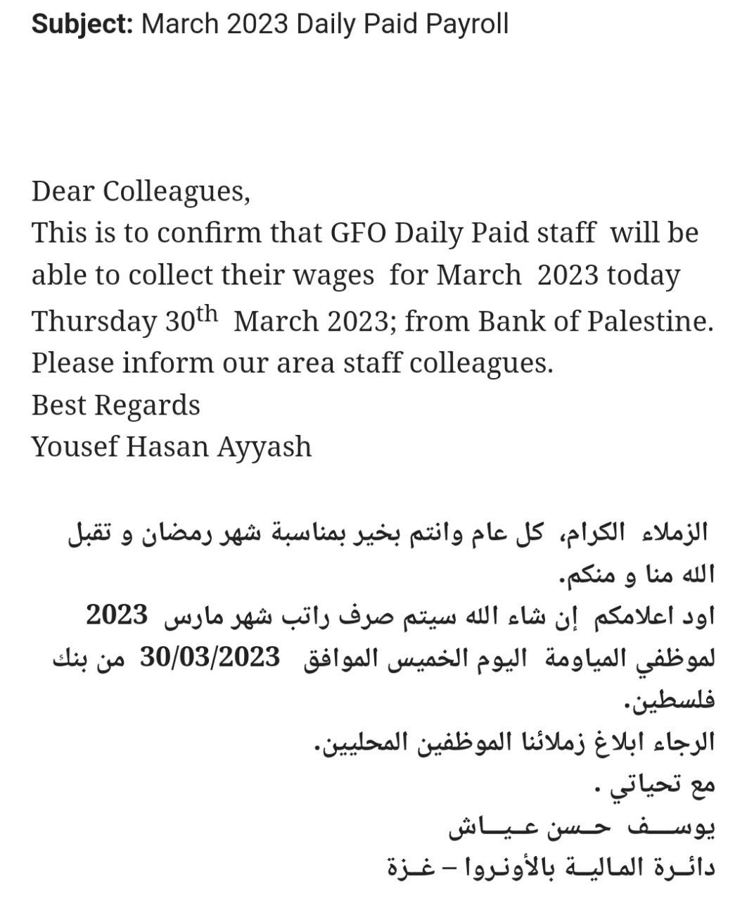هل في حدا يومي نزله قبل هيك راتب ما قبضه و رجع من البنك للوكالة بغزة