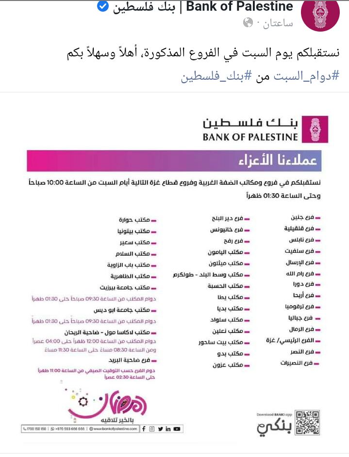 كل الكوكب صار معاه علم انه الراتب اليوم الا بنك فلسطين