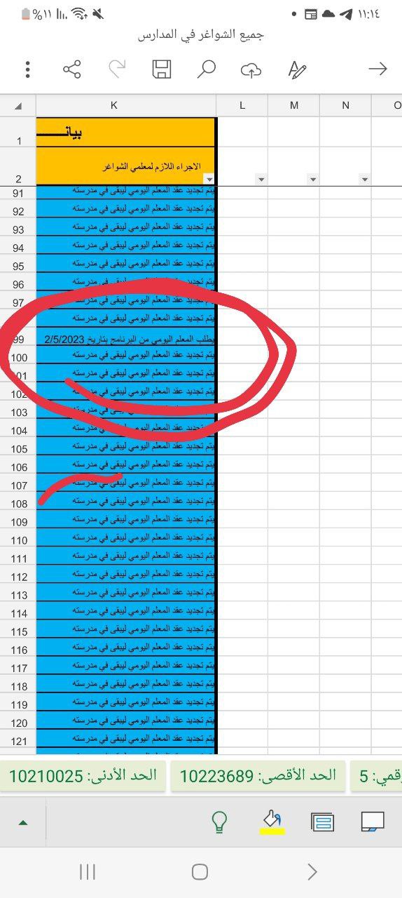 الشواغر الموجودة (2) بيانـــــــــــــــــــــــــــــــات معلمــــــــــــــــــــــــــي اليومــــــــــــــــــــــــــي ( بــــــــــــــــــــدل شاغـــــــــــــــــــــر ) رقم اليومي,المنطقة,كود المدرسة,المدرسة,اسم مدير المدرسة,رقم مدير المدرسة,Rank,الجنس,التخصص,اسم اليومي,الاجراء اللازم ل...