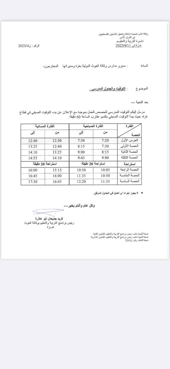 *⭕تنوية ‼️ غدا دوام بكافة مؤسسات الأنروا بما فيها العيادات عدا المدارس .*