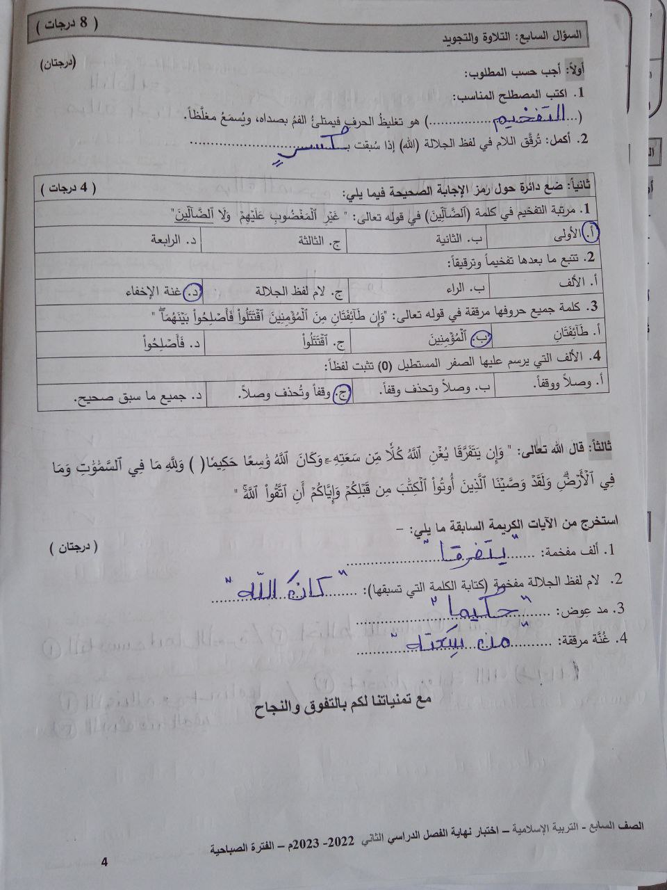 تسررررب الاختبار ، وجابوا اختبار من خمس سنين ، عليه 50درجة بدل 60