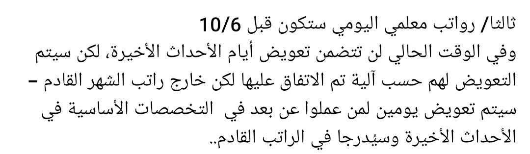🔴سيستمر دوام المعلمين حتى يوم الاثنين الموافق 6/5