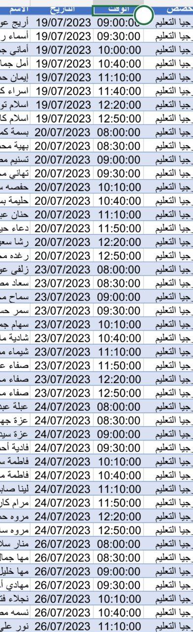 وقت المقابلة في كافة التخصصات التعلمية هذا العام