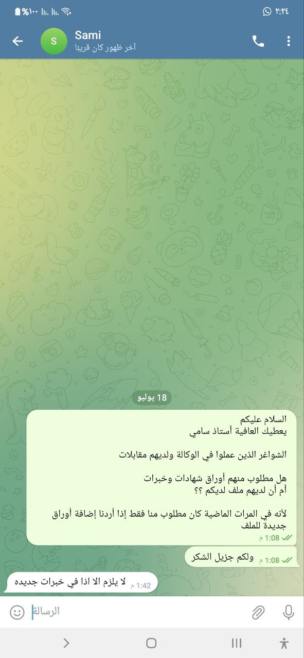 ليس مقياسا الان يوجد لجنتين تقريبا النتائج اول ٩ بتكون جاهزة المقابلة نصف ساعة فقط وسرعة الموارد بشكل كبير
