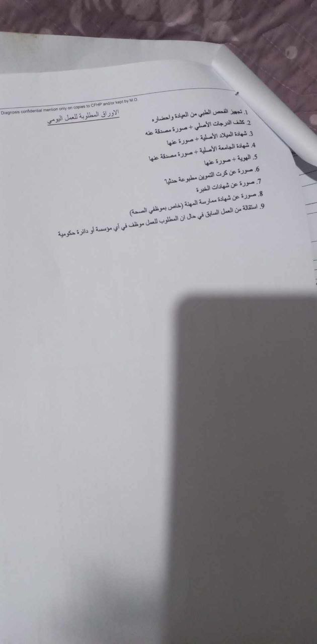 مسا الخير في حد أعطوه هاد مع ورقة الفحص الطبي أول مرة يطعونا ياها