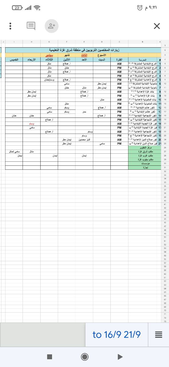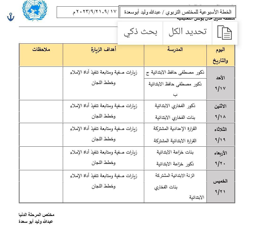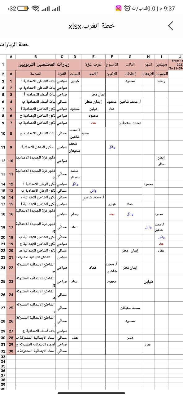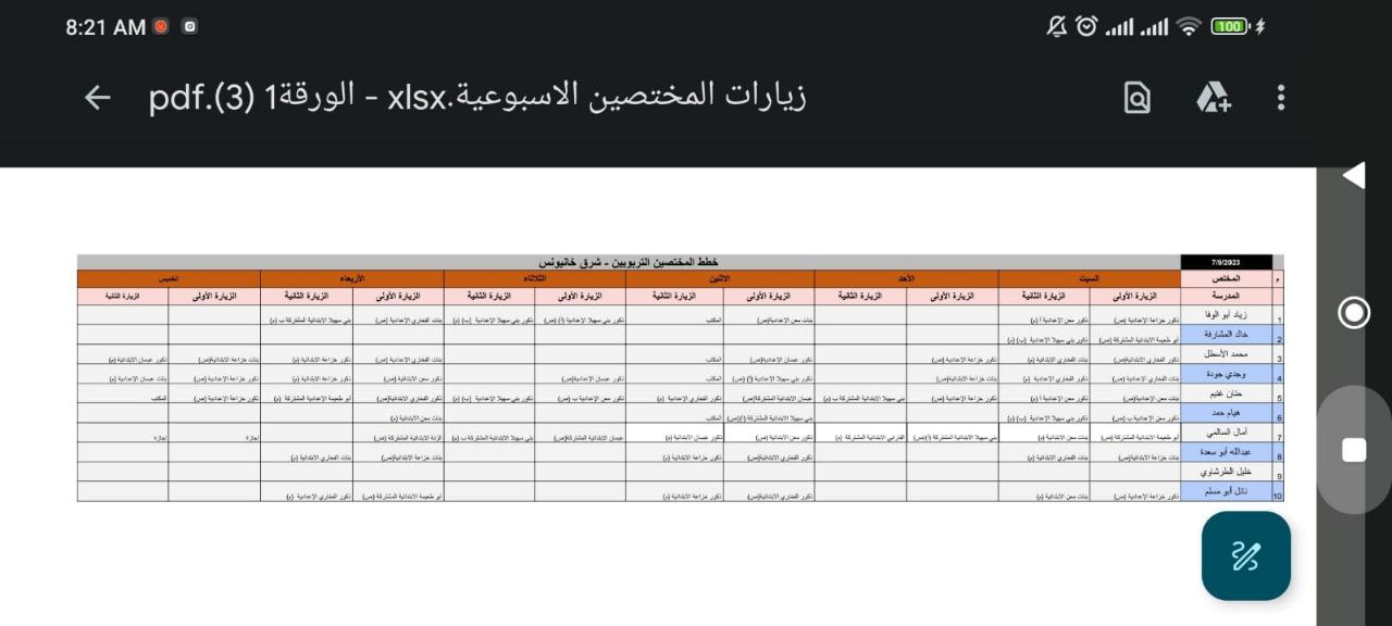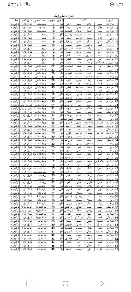 جدول المشرفين غرب خانيونس موجود ؟؟