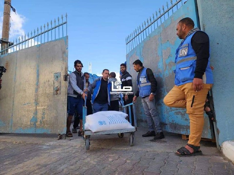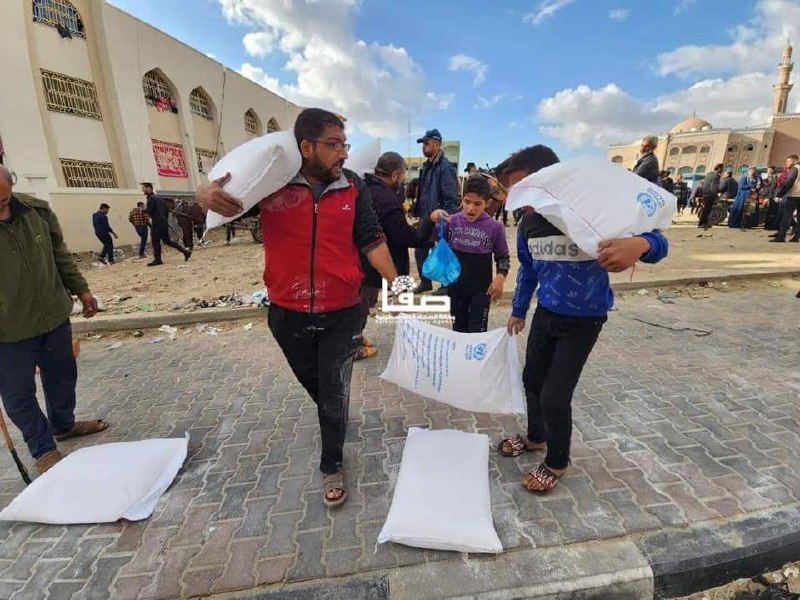 | وكالة الغوث تبدأ بتوزيع الطحين بشكل تدريجي لسكان قطاع غزة من رفح حتى المنطقة الوسطى.