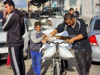 توزيع الطحين على المواطنين في مدينة رفح جنوب قطاع غزة بعد معاناة 45 يوما من عدم توفر الخبز