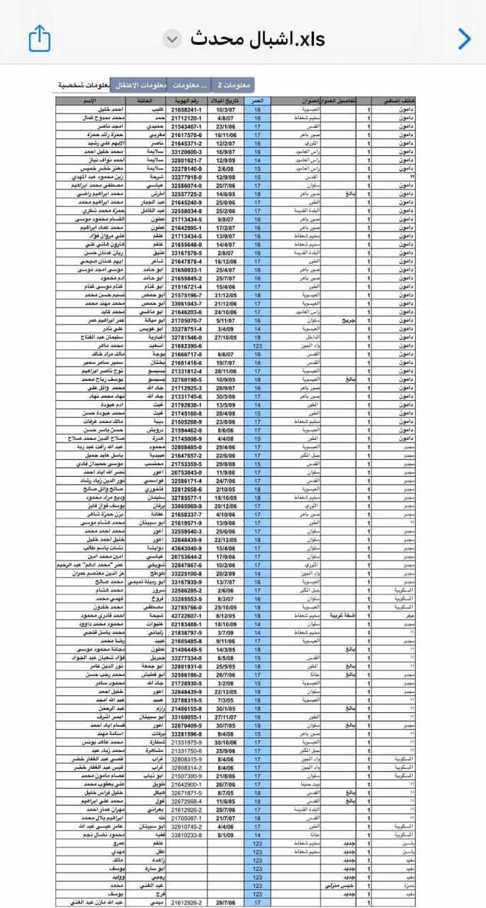 مصادر محلية| الأسماء الواردة في قائمة وزارة القضاء للمفرج عنهم/ن من الأشبال والأسيرات في القدس: