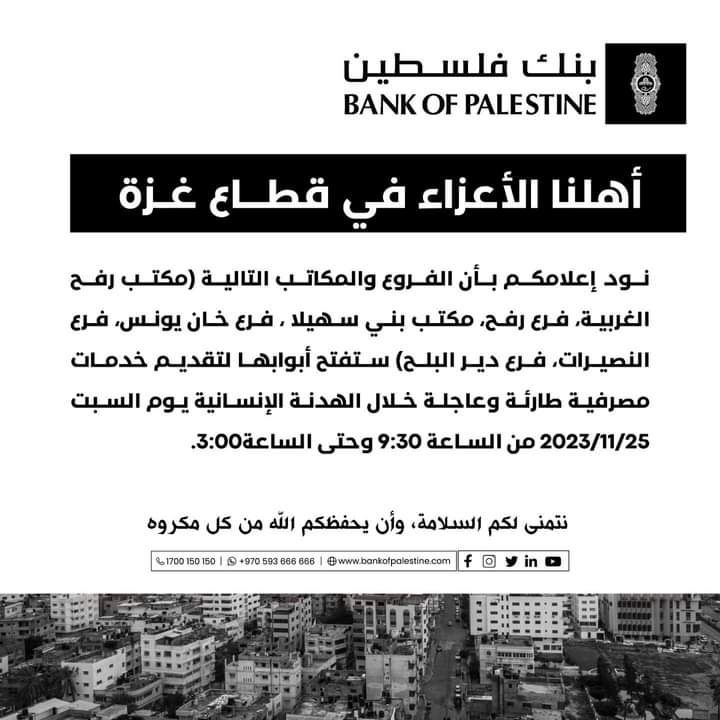 بخصوص قطاع غزة .. تم نشر البنوك التي بامكانكم صرف الرواتب منها -
