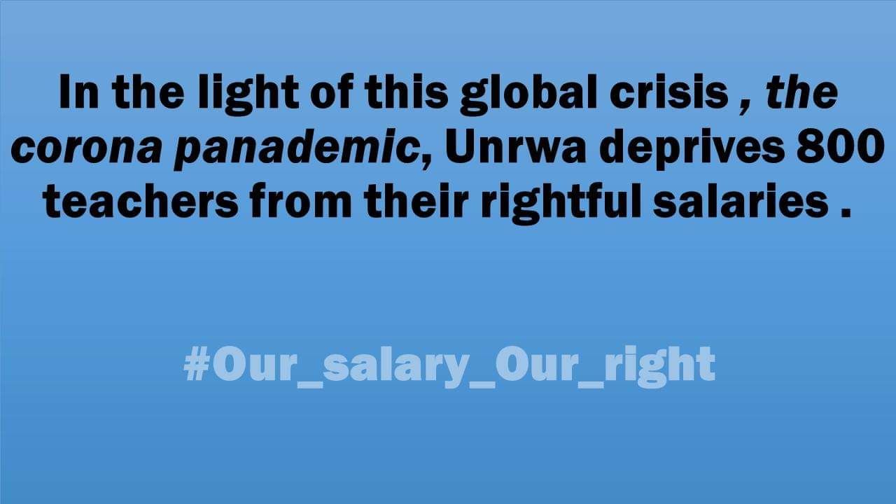 You know that we are living in hard circumstances which are imposed by the Covid19 in Gaza Strip so we ask you to make a human decision to agree to pay the daily paid teachers their salaries along the Covid 19 period . That decision will help and relieve 800 families and make them get well during the Covid 19 crisis.