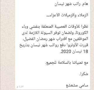 ان شاء الله يكون مزحنا مع بشري لنا بعودة رواتبنا