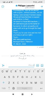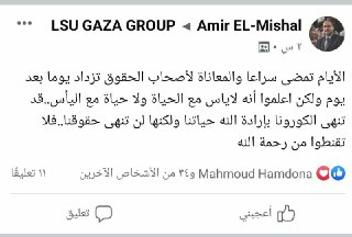 يواصل اتحاد غزة التواصل مع المؤتمر العام لاتحادات الموظفين لإيجاد حل لقضية رواتب اليومي، وهي قضية تخص جميع الأقاليم، وليست لغزة وحدها، وخلال اليومين القادمين سيتسلم المفوض الجديد مهامه، وستكون قضية رواتب اليومي على سلم أوليات المؤتمر العام لاتحادات الموظفين... وفي حال اتخاذ قرار سيكون خاص بجميع المناطق... هناك مبادرات من بعض الجهات بإعطاء راتب شهر مارس فقط..نأمل من الله أن نحقق لكم مطالبكم فهو السند والمعين." -